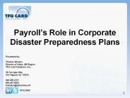 Description: Payroll s Role in Corporate Disaster Preparedness Plans Presented by: Thomas Whalen Director of Sales, NE Region TFG Card Solutions, Inc. 38 Corrigan Way – PowerPoint PPT presentation