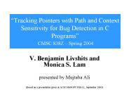 Description: Unsoundness gives very few false positives. Unsoundness allows efficient path- and context-sensitive analysis. Tested on real code ... – PowerPoint PPT presentation