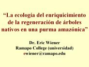 Description: La ecolog a del enriquicimiento de la regeneraci n de rboles nativos en una purma amaz nica Dr. Eric Wiener Ramapo College (universidad) – PowerPoint PPT presentation