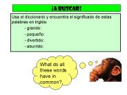 Description: A buscar! Usa el diccionario y encuentra el significado de estas palabras en ingl s: grande: peque o: divertido: aburrido: What do all these words have in common? – PowerPoint PPT presentation