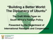 Description: Building a Better World: The Diplomacy of Ubuntu The Draft White Paper on South Africa s Foreign Policy Presented by the Department of International Relations ... – PowerPoint PPT presentation