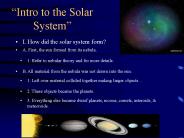 Description: Intro to the Solar System I. How did the solar system form? A. First, the sun formed from its nebula. 1. Refer to nebular theory and for more details. – PowerPoint PPT presentation