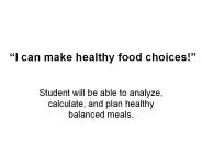 Description: I can make healthy food choices! Student will be able to analyze, calculate, and plan healthy balanced meals. – PowerPoint PPT presentation