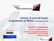 Description: multi-location music video recording session using real-time streaming video ... CD quality sound (750 kbps) of 2 separated musicians in Dallas streamed to Stanford ... – PowerPoint PPT presentation