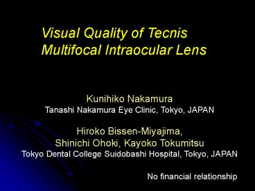 Visual Quality of Tecnis Multifocal Intraocular