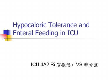 1Hypocaloric Tolerance and Enteral Feeding in ICU