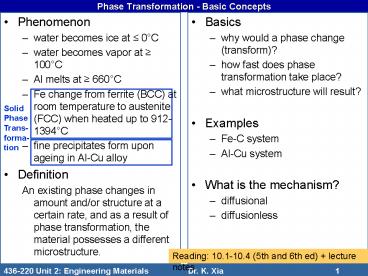 is the highest at some intermediate temperature. - The whole phase transformation takes some time to
