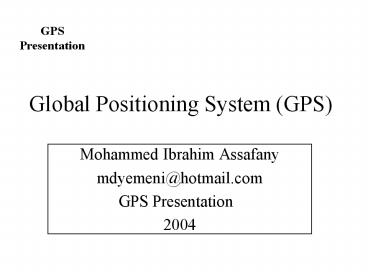 Global Positioning System (GPS) PowerPoint PPT Presentation