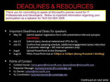 <Notice: Removed> DEADLINES PowerPoint PPT Presentation
