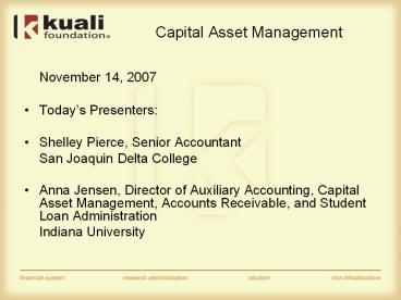 <Notice: Removed> Capital Asset Management PowerPoint PPT Presentation