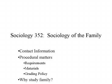 Sociology 352: Sociology of the Family PowerPoint PPT Presentation