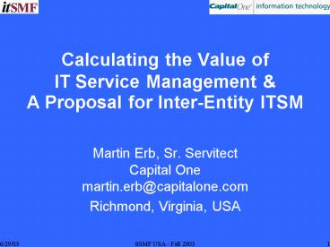 <Notice: Removed> Calculating the Value of IT Service Management PowerPoint PPT Presentation