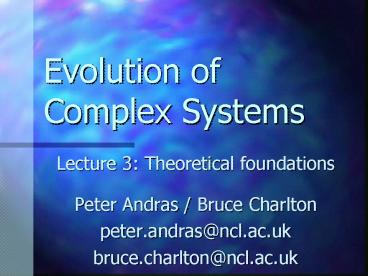1Evolution of Complex Systems