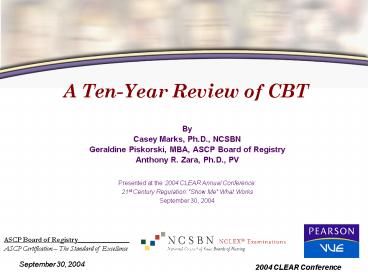 Ph.D., PV Presented at the 2004 CLEAR Annual