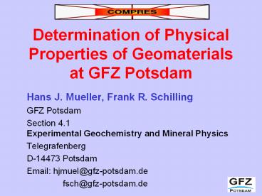 Title: Determination of Physical Properties of Geomaterials at GFZ Potsdam