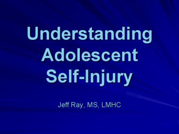 1Understanding Adolescent Self-Injury