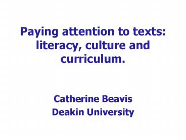 Title: Paying attention to texts: literacy, culture and curriculum.