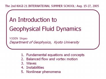 YODEN Shigeo Department of Geophysics, Kyoto