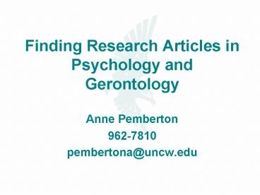 Finding Research Articles in Psychology and Gerontology PowerPoint PPT Presentation