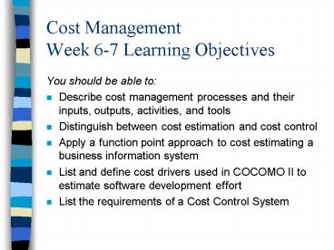 inputs, outputs, activities, and tools - Distinguish between cost estimation and cost