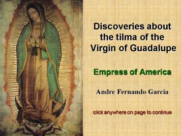 Discoveries about the tilma of the Virgin of Guadalupe Empress of America Andre Fernando Garcia clic PowerPoint PPT Presentation