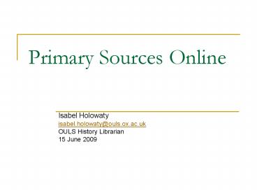 Title: Primary Sources Online