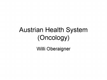 Austrian Health System Oncology PowerPoint PPT Presentation