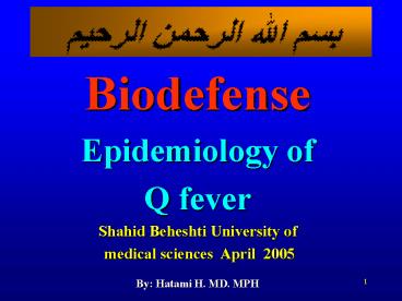 Biodefense Epidemiology of Q fever Shahid