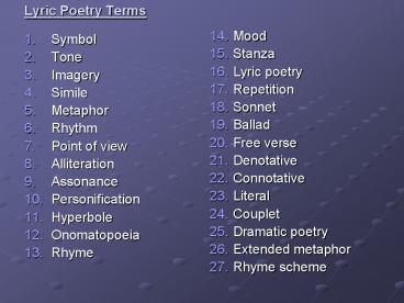 Lyric Poetry Terms PowerPoint PPT Presentation