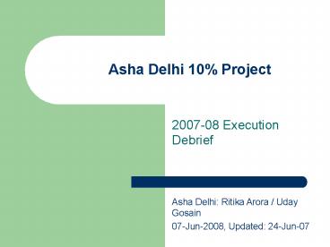 Seemapuri, have been visited so far - Process involves interviewing parents on their