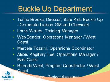 • Torine Brooks, Director, Safe Kids Buckle Up -