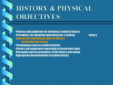 1HISTORY PHYSICALOBJECTIVES