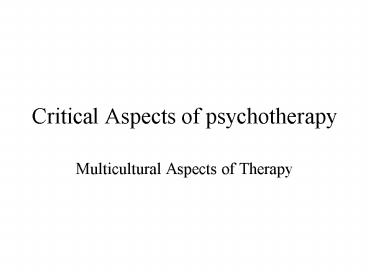 Critical Aspects of psychotherapy PowerPoint PPT Presentation
