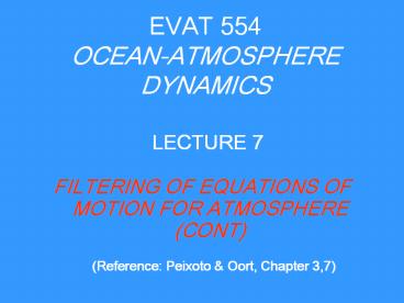 Title: EVAT 554 OCEAN-ATMOSPHERE DYNAMICS
