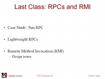 Title: Last Class: RPCs and RMI