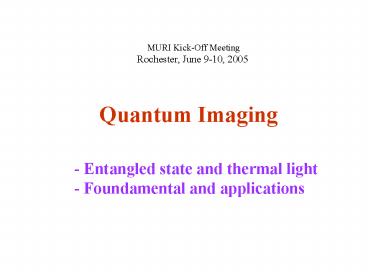 1MURI Kick-Off Meeting Rochester, June 9-10, 2005