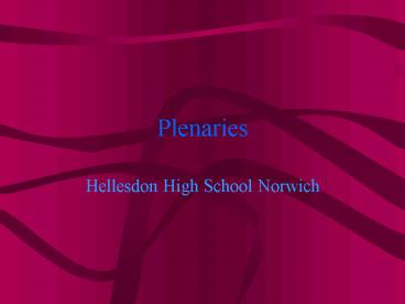 Plenaries PowerPoint PPT Presentation
