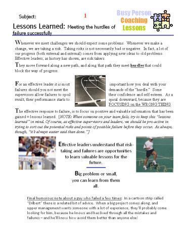<Notice: Removed> Busy Person Coaching Lessons PowerPoint PPT Presentation