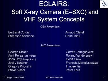 <Notice: Removed> ECLAIRS: Soft Xray Camera ESXC and VHF System Concepts PowerPoint PPT Presentation