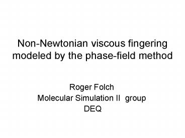 NonNewtonian viscous fingering modeled by the phasefield method PowerPoint PPT Presentation