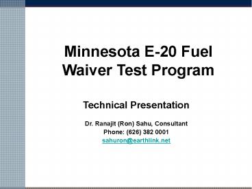 Title: Minnesota E-20 Fuel Waiver Test Program