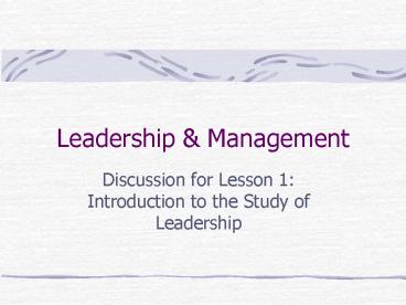 • Read Leadership Management, Chapter 2.