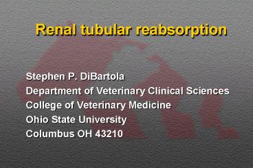 <Notice: Removed> Renal tubular reabsorption PowerPoint PPT Presentation