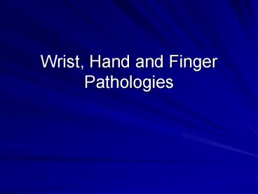 Wrist, Hand and Finger Pathologies PowerPoint PPT Presentation