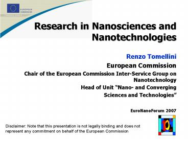 Title: Research in Nanosciences and Nanotechnologies