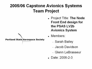 Title: 2005/06 Capstone Avionics Systems Team Project