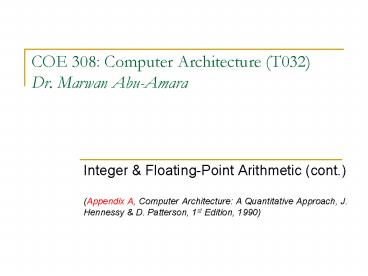 COE 308: Computer Architecture T032 Dr' Marwan AbuAmara PowerPoint PPT Presentation