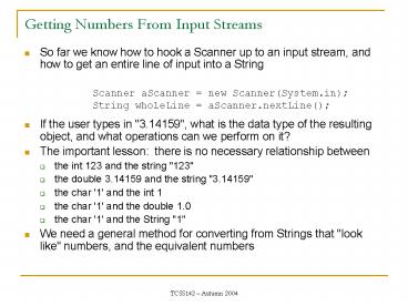then converts it to an int - aScanner.nextDouble() extracts the next token