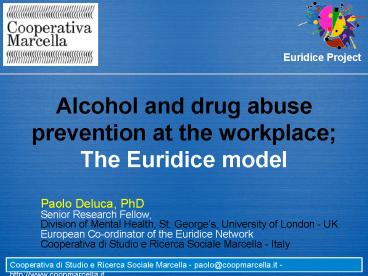 Alcohol and drug abuse prevention at the workplace The Euridice model PowerPoint PPT Presentation