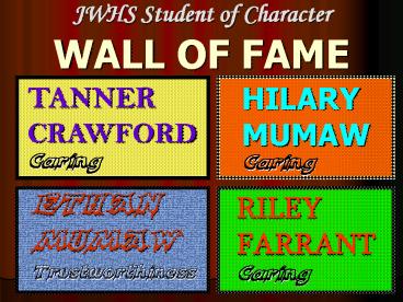 JWHS Student of Character WALL OF FAME PowerPoint PPT Presentation